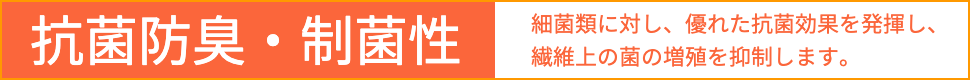 一般的に聞き覚えのある「抗菌防臭」は生地表面の細菌を防臭する程度に増殖するのを抑制することに対して、「制菌」は細菌をそれ以上に増やす ことなく、菌数を減少させることを言います。「制菌」には抗菌を上回る効果があると言っても過言ではありません!