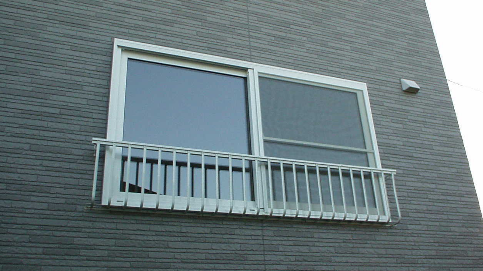 縦格子のシンプルなデザイン、安全性と耐久性を重視したアルミ窓手摺です。