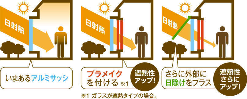 窓とプラメイクの間隔を広げ(ふかし)中間空気層を大きくするふかし枠(オプション)を使うと、より効果的。