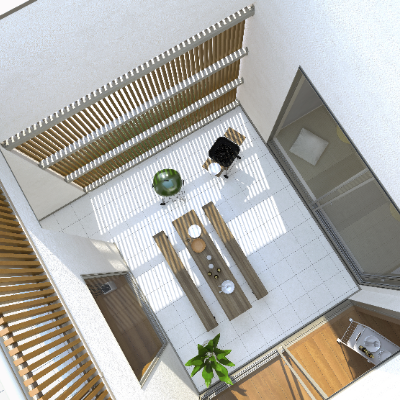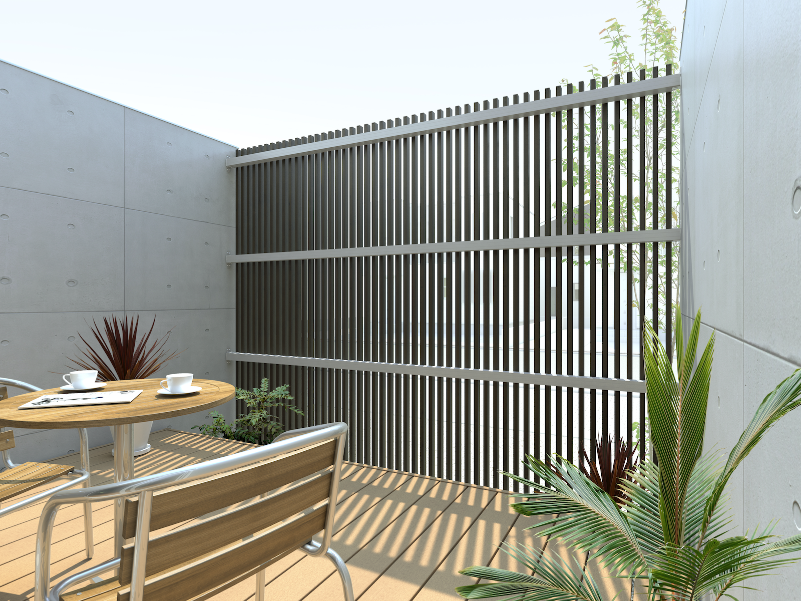 スクリーンが視線を遮りながら光と風を取り入れ、プライベートな空間を確保します。