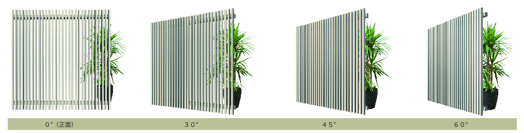 30mm×50mmの格子寸法と格子ピッチにより、斜めからの視線を遮断しながら、ほどよく採光・通風します。